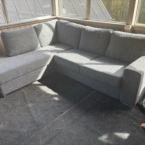 En liten soffa har fläckar och djur har funnits i hemmet, går säkerligen att göra rent men har ej tiden till det så den säljs.