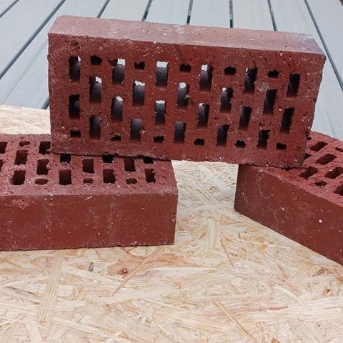 Tegel röd, murbruk och puts finns,