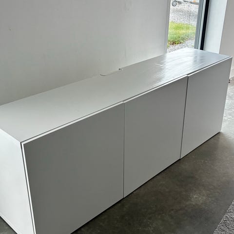 4st vita moduler med dörrar. Den ena har lite mer slitage på ovansidan, går att se på bild. Finns även ett borrat hål på insidan av ett av skåpen då dom har använts som tv-bänk.