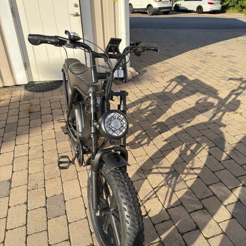 Cykeln är i gott bruksskick med fullt fungerande motor och batteri. Det finns några mindre kosmetiska skrapmärken. Sadeln sitter för närvarande löst då skruvarna har vibrerat bort, vilket enkelt kan åtgärdas.