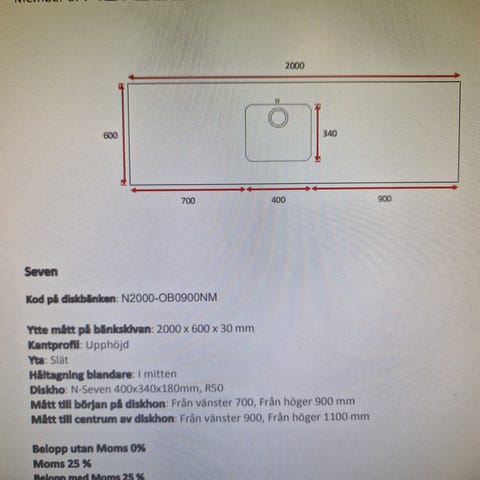 240 x61 cm perfekt för utekök, vi behövde bara en. Plasten fortfarande kvar.