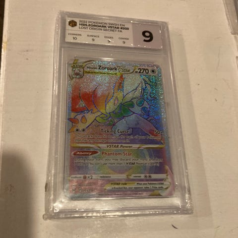 Pokémonkort Misty’s Psyduck med holo-foilmotiv. Förvaras i hårt plastskydd som syns på bilderna.