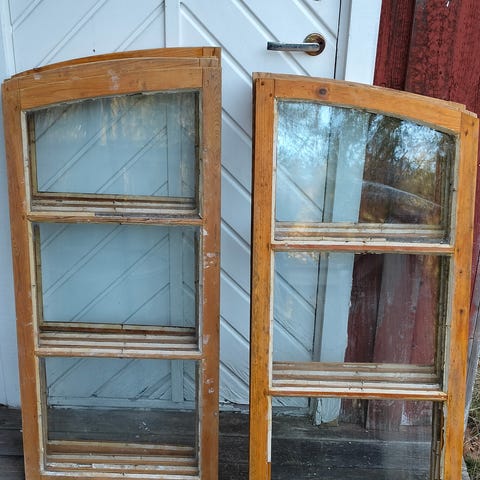 Två äldre fönster med karm säljes tillsammans, ett liggande och ett stående. Passar bra om du behöver extra fönster till förråd, bod eller liknande.