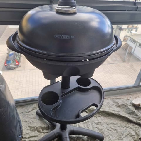 Severin Sevo elgrill på vagn med sidobord och hylla under för enkel avställning. Har lock, grillgaller i metall och vred på fronten för att ställa in värmen. Och kan bluetooth styras med nedladdad app för matlagning, grillning, ström mm. Riktigt nice El-grill, har flyttat till hus så köpt en Kol-grill istället, därav försäljningen. Använd 3 ggr. Nypris 8000kr!! Säljes för vrakpris, priset inte ristat I sten!