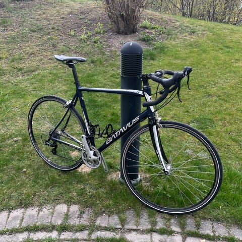 Aluminium ram. 20 växlar. Sadelväska med slang o verktyg. Pump. Körd ca 40 mil. Ultegra fälgar. Shimano växlar.