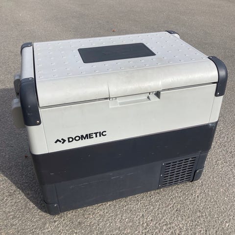 Mobicool elektrisk kylbox på 38 liter i blått och vitt. Endast använd 2 veckor.
