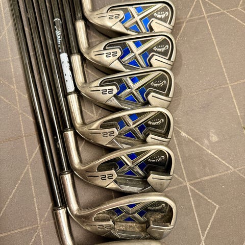 Klubborna är utrustade med R-flex skaft, vilket passar spelare med medelsnabb sving. Greppen är i bra skick och redo för många fler rundor.