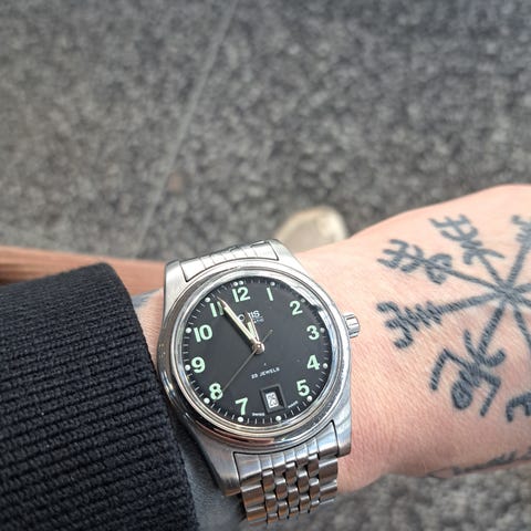 Otroligt fin med pinstripe detaljer på urtavlan och guldiga detaljer längst med fasningarna runt klockan.
