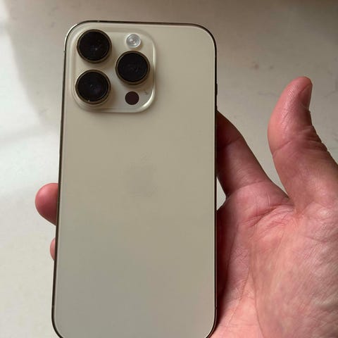 Säljer en iPhone 13 Pro Max med 128 GB lagring i guldig färg. Har trippelkamera på baksidan och platt kantig design, se bilder för hur den ser ut. Inga repor på den. Skal och kartong ingår. Fungerar som den ska. Batterihälsa runt 80%