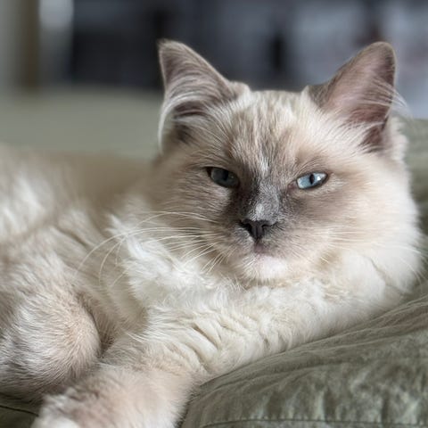 Hon är en blue-point ragdoll utan stamtavla (hennes mamma saknar men hennes pappa har en). Söker främst en hane med stamtavla. Jag bor i Göteborg och söker en hane i närområdet 🙂.