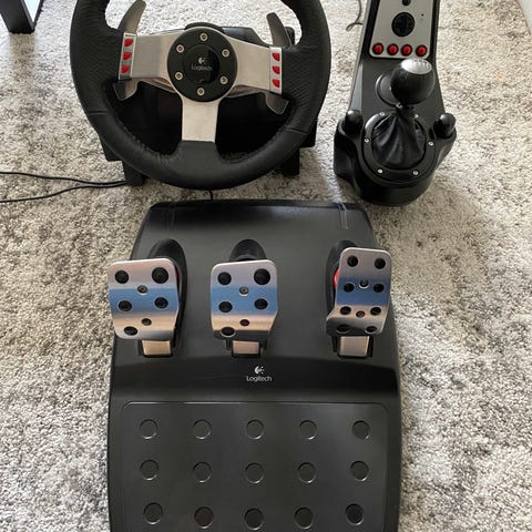 Logitech G29 + ASUS Monitor + Logitech hörlurar + Kontorstol