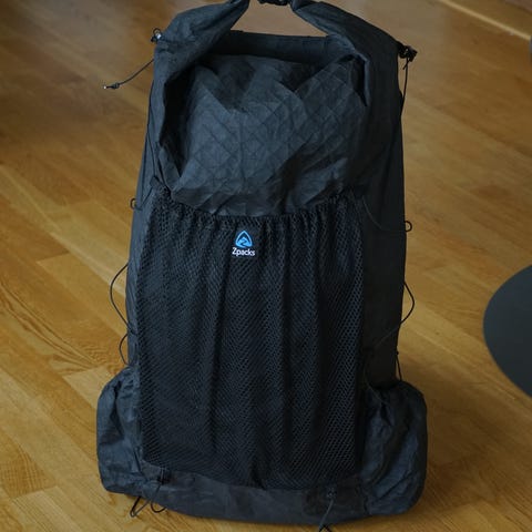 Ryggsäck från Hyperlite Mountain Gear med stor ficka på framsidan.