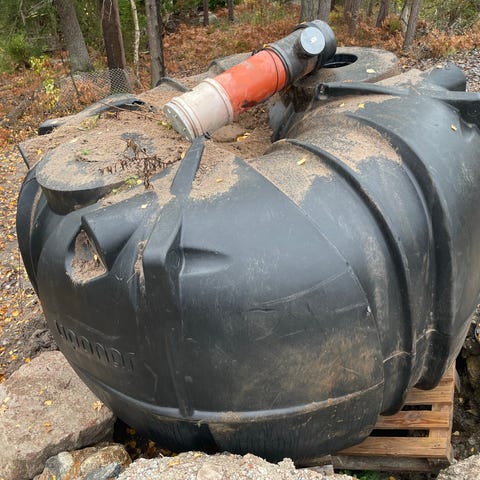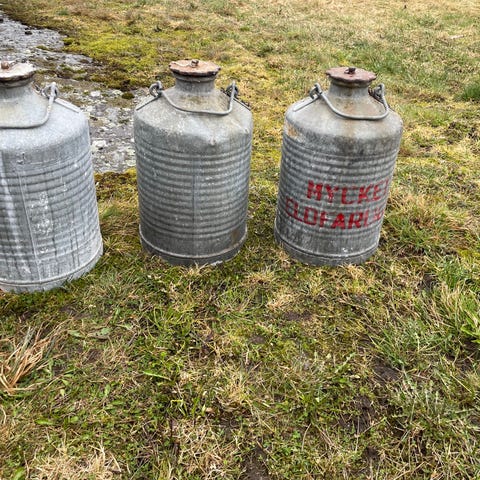 Cylindriska ståltankar, lämpliga som exempelvis lagringstankar för regn vatten för bevattning av trädgårds växterna. Volymen ca 800L per tank.