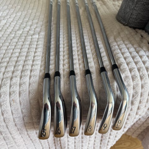 Titleist ap1 718 järnset med klubbor 5, 6, 7, 8, 9, P och 48 *. Fina rena träffytor och klassiska silverhuvuden, skaften är tensei ck series amc ir flex r. Vilket kostade runt 7000 nya plus huvuden!