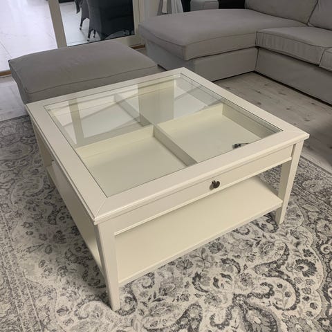 Vit blank soffbord i bra skick och förvaringslåd. Säljer pga flytt.