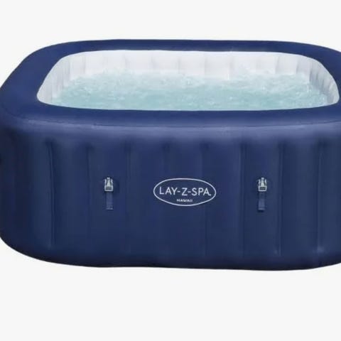 Rektangulär blå pool från SunClub, mått ca 200 x 150 x 50 cm enligt kartongen. Poolen är ny och aldrig upptagen ur kartongen. Medföljande luftpump på bild som gör det enkelt att blåsa upp poolen.