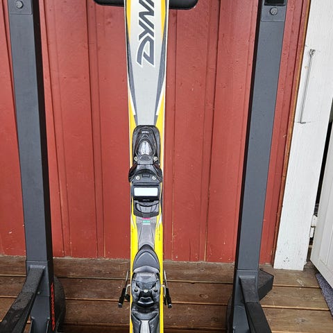 Movement friåkningsskidor med snygg svart/orange design och grafik längs ovansidan. Utrustade med justerbara bindningar.