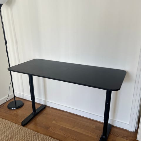 Säljer mitt skrivbord från Ikea. Skrivbordet går att höja och sänka till önskad höjd och det är möjligt att ställa in 5 förinställda positioner.