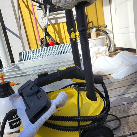 Man fyller den med vatten, den värmer upp vattnet och sprutar sedan ut het ånga för att rengöra t.ex.: