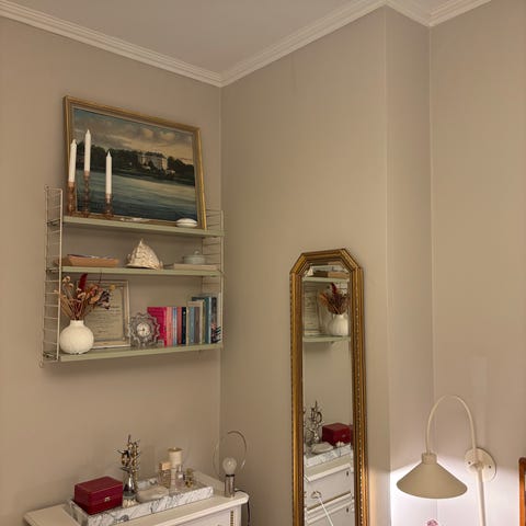 Stringhylla i vitt med flera hyllplan som monteras på väggen. Perfekt för böcker, porslin eller annat smått och gott i kök eller vardagsrum.