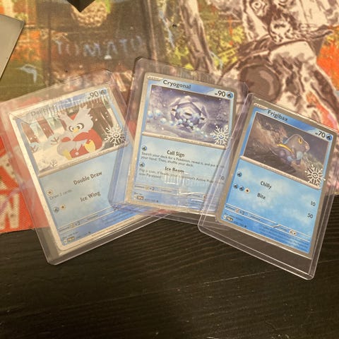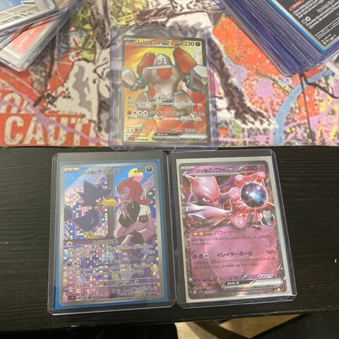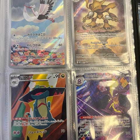 Säljer en liten samling japanska Pokémonkort med olika motiv och typer. Alla korten ligger i hårda plastfickor och är redo för en ny samlare.