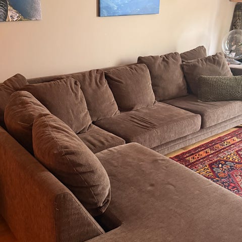 Soffan är stor, bekväm och djup, med plats för flera personer och perfekt att ligga/sova i.