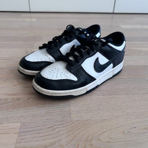 Svartvita Nike dunk sneakers i stl 26 för barn, unisexmodell. Snörning framtill och gummisula.