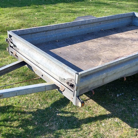 80 obromsad , nya hjullager, finns kapell med bågar, 2.5x1.4 m lastyta