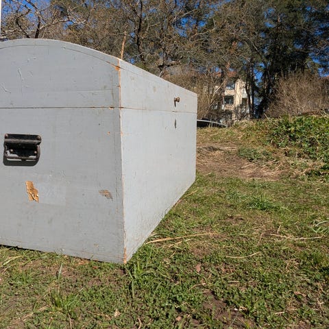 Säljer en rejäl förvaringskista i massivt trä, ursprungligen från New York. Den är i mycket gott strukturellt skick med snygga laxstjärtsskarvar (dovetail joints) och svarta järnbeslag. Det finns en del ytrepor på locket (se bilder) vilket ger den en rustik karaktär, men den går även utmärkt att slipa om. Perfekt för förvaring i hallen eller sovrummet.