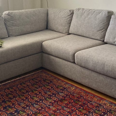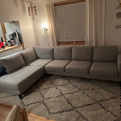 Säljer en stilren och bekväm hörnsoffa från Kallin & Franzén. Soffan är originalbeställd som hörnsoffa och består av två tvåsitsdelar samt hörndel.
