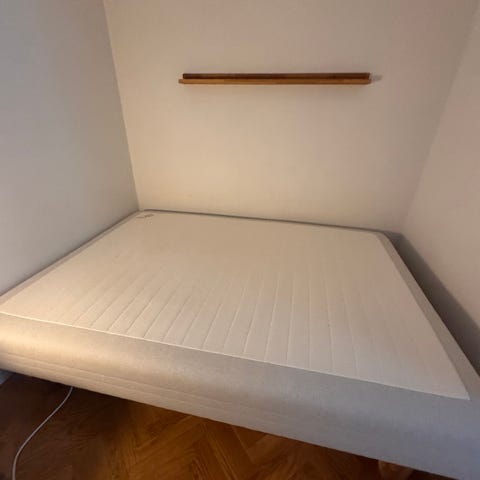 Bortskänkes: IKEA-säng med hög madrass och stoppad gavel
