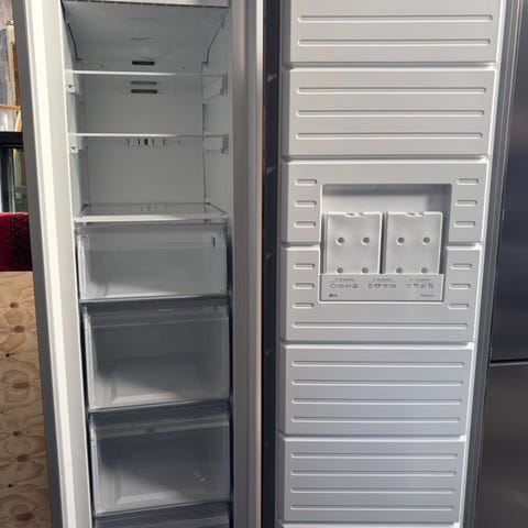 Husqvarna frysskåp i vitt med flera genomskinliga lådor invändigt. Bra överblick med utdragslådor i hela skåpet.