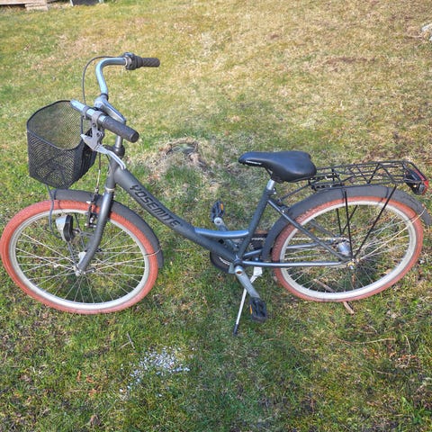 Kvalietscykel från svenska MADE, bra komponenter rakt igenom. Använd men fortfarande i mycket bra skick. Den största skönhetsfläcken är att glaset på växelreglaget blivit frostigt, se bild. Däcken är 24 tum, ramstorlek kan jag inte utläsa. Men lagom för typ 8-11 år.