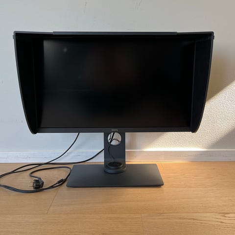 BenQ SW27 27" skärm i svart med justerbart stativ. Har tunn ram runt panelen och skärmkåpa som går att sätta runt skärmen. 4k nypris 12000
