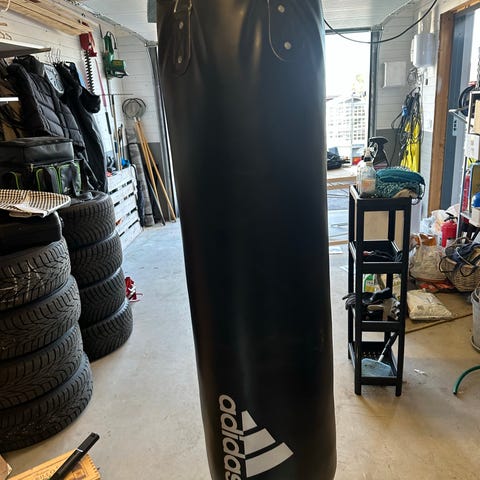 Svart boxningssäck för barn från Adidas med stort logotryck på sidan. Hängs upp med remmar. Remmarna är justerbara så du kan få önskad längd.