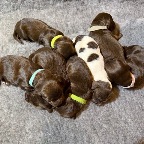 Vi är noga med att socialisera våra valpar och de växer upp i ett hem med liv och rörelse, katter och andra hundar.