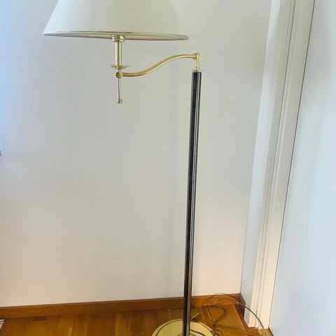 Jag säljer en elegant golvlampa från EWÅ, modell G-20, Värnamo, tillverkad under 1900-talets senare hälft. Golvlampa är tillverkad i mässing med en justerbar arm som gör det möjligt att rikta ljuset efter behov. Lampan har en stabil bas och en klassisk design som passar in i många olika inredningsstilar. Skärm ingår.