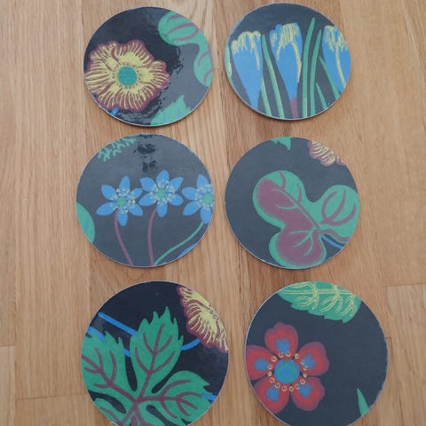 5 st bordstabletter /underlägg, design Josef Frank, för Firma Svenskt Tenn. Plast. Oanvända. Se mina övriga annonser.