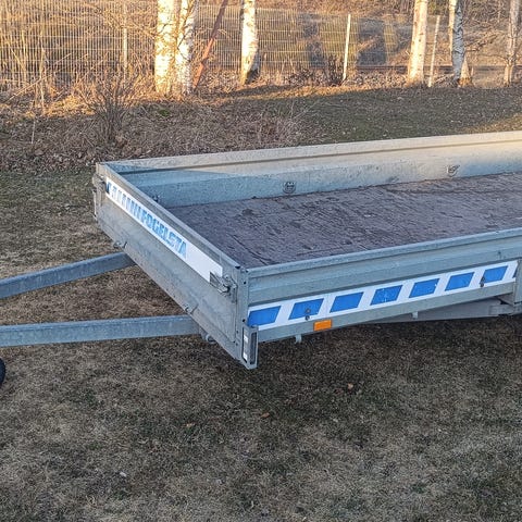 Tot vikt 800kg, lastvikt 570kg. Allväders däck, körförbud pga ojämn bromsverkan samt rostangrepp hjulaxel. I övrigt fullt fungerande och bra skick för sin ålder. 1st reservhjul medföljer.
