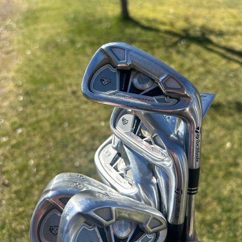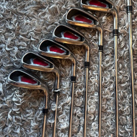 Halvt järnset från TaylorMade modell r11, kbs 90 stiff skaft. Lite ytliga repor på huvudena men inget mer än så. Greppen har mycket kvar att ge.