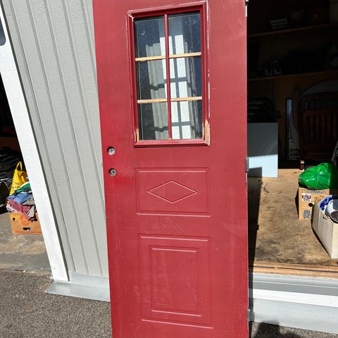 * Ena med tre glasrutor i dörren, dörr 84x205 cm, karm 88x209. Pris 2500 kr.