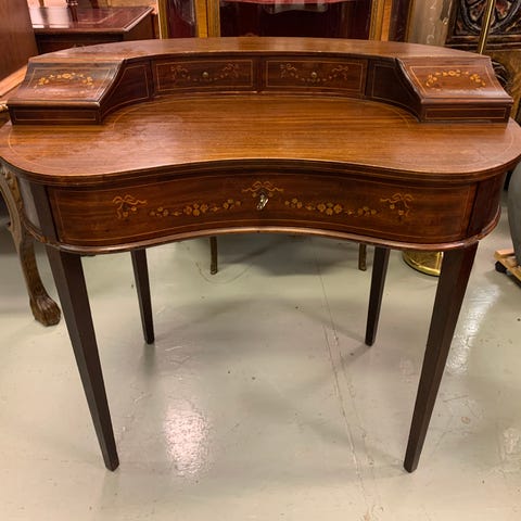 Antik Rokoko Skrivbord i mörkt trä med grön skinnskiva