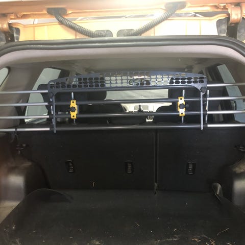 Krocktestad Universalnät skyddar passagerare från last i bagageutrymmet & säkrar upp hunden bakom passagerarutrymmet. MIMSafe VarioBarrier HR skyddsgaller passar de flesta bilar med runda nackstödspinnar, enkel att flytta & installera med justerbar höjd/bredd. MimSafe VarioBarrier HR Small - Medium