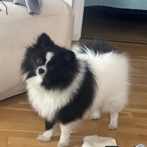Så gott som rumsren men en olycka kan hända när han är mitt i en lek med någon. Är registrerad i JBV, är försäkrad , vaccinerad