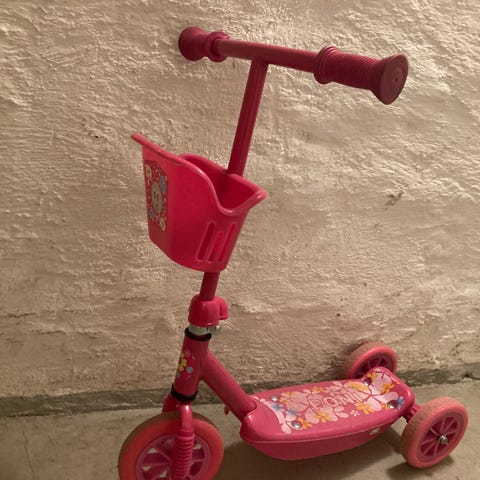 Disney Frost sparkcykel i blått och rosa med motiv på fotplattan.