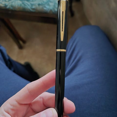 Vintage reservoarpenna med guldig spets märkt Provita, 2 M (antagligen för storlek medium).