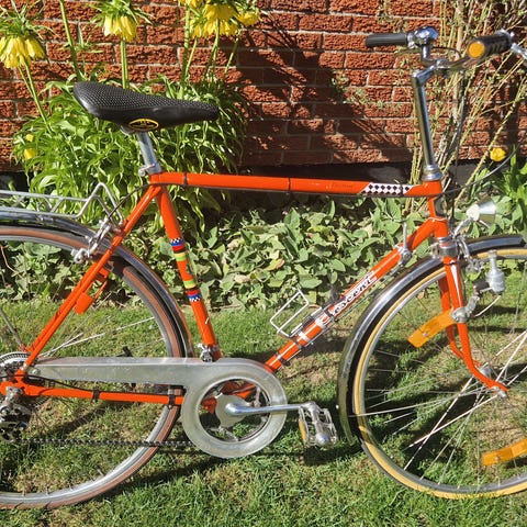 Klassisk Landsvägscykel med ramstorlek M och 27"-hjul, unisexmodell. Utrustad med pakethållare bak, stänkskärmar och bockstyre med 10 växlar.