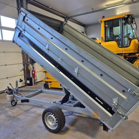 En trevlig tippkärra med 3-vägstipp och spridarlämm, fällbara och avtagbara lämmar.