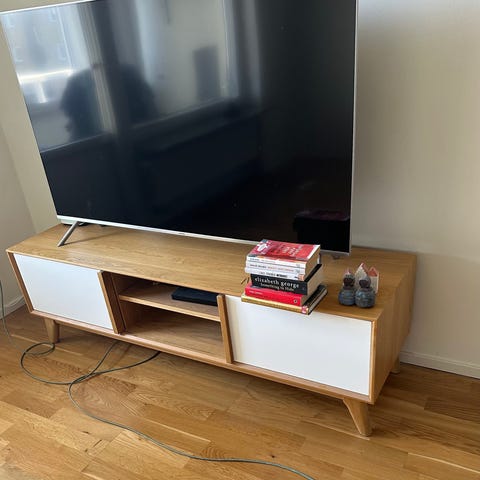 Philips 4K Ultra HD TV med Ambilight 3 och Android TV, enligt kartongen. Har tunn ram och står på smala ben. 55” och väggfäste ingår!