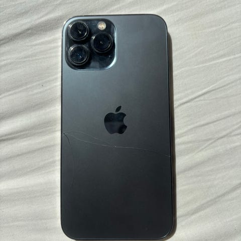 Apple iPhone 13 Pro med 128 GB lagring, grå färg och trippelkamera på baksidan. Face ID och alla knappar och portar sitter som vanligt på kanterna.